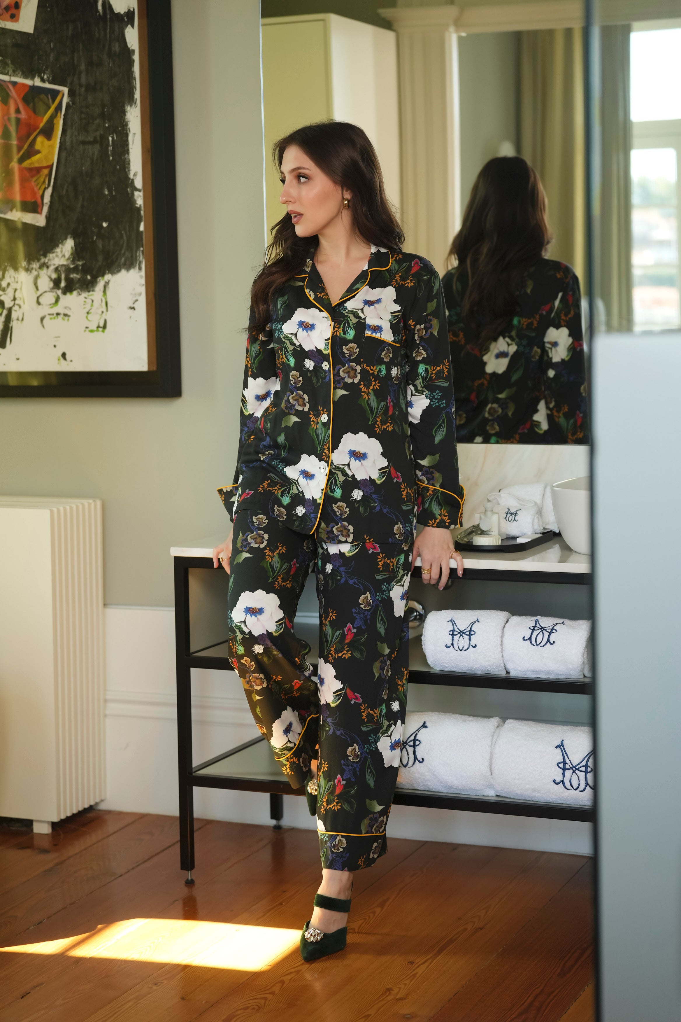 • Flower-shaped pearly buttons