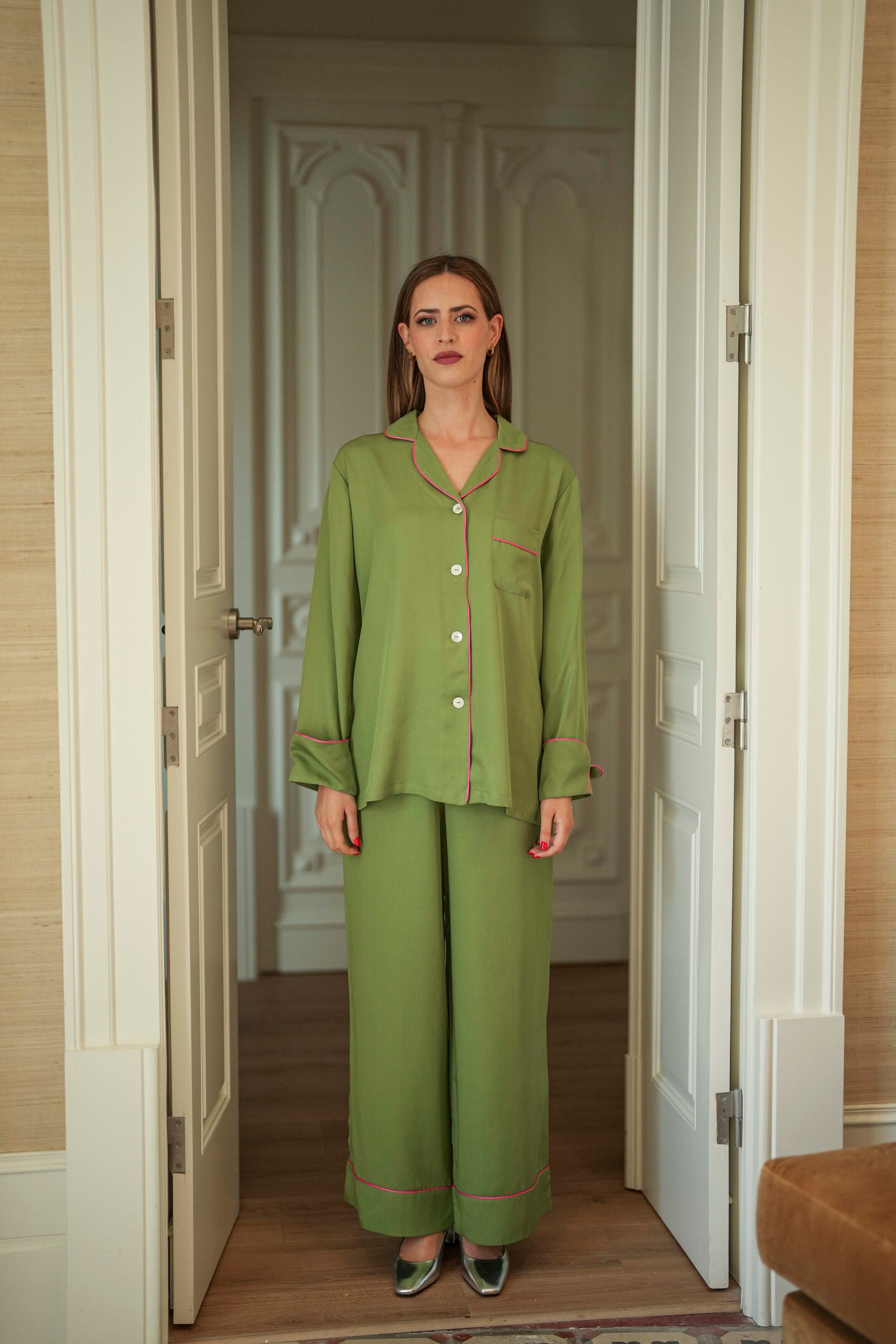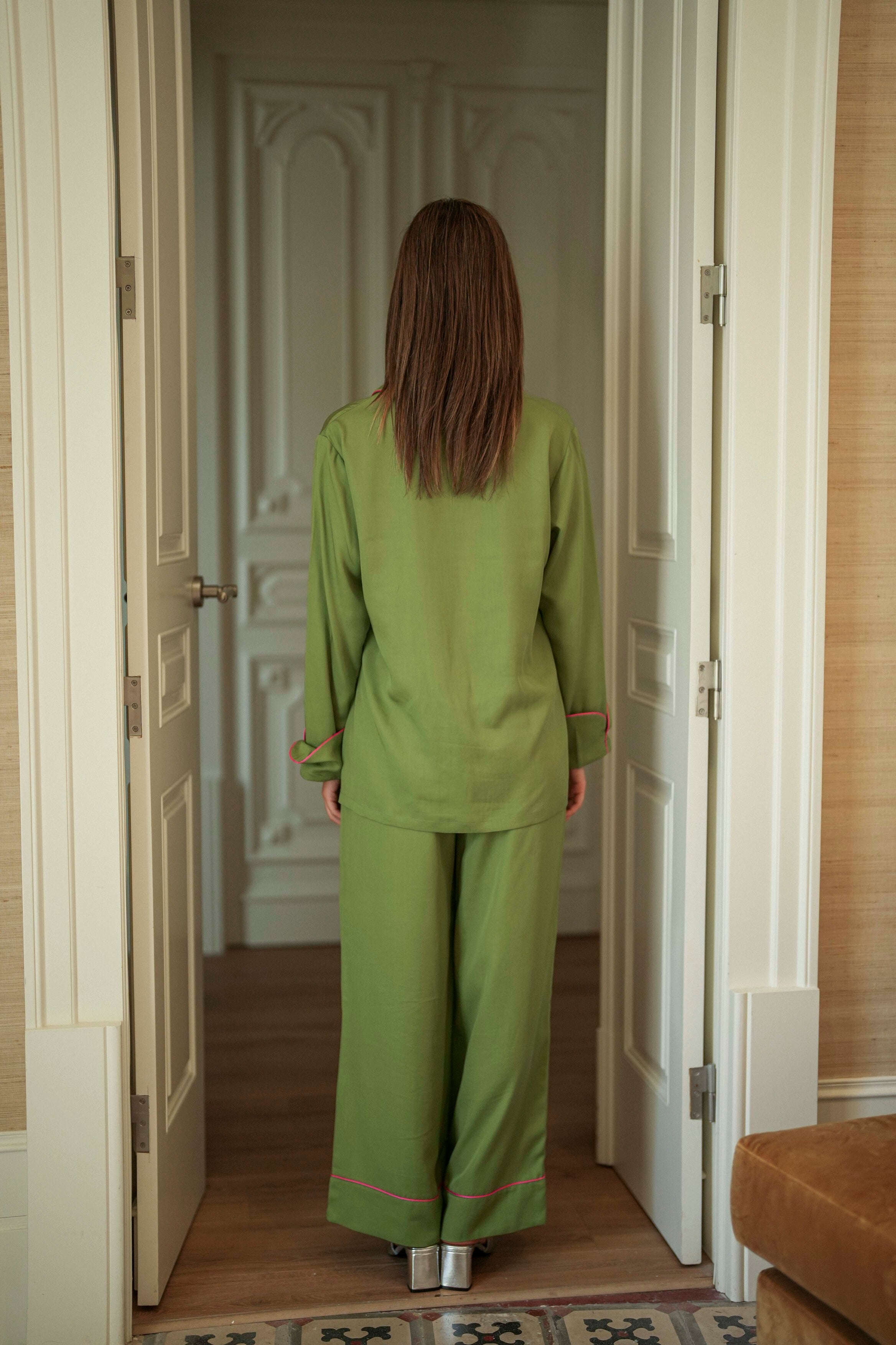 • High-waisted pants with two side pockets, comfortable elastic waistband