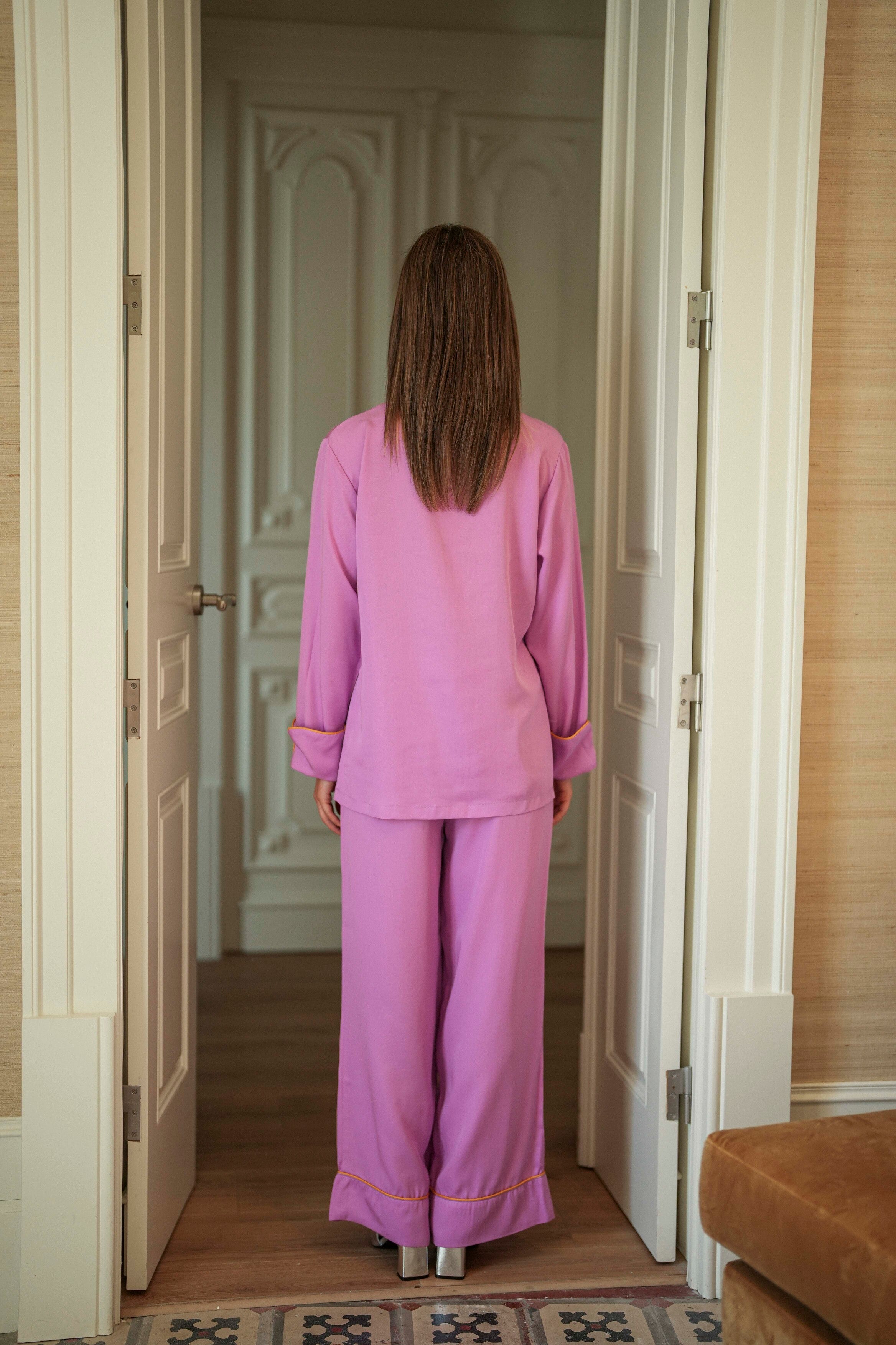 • High-waisted pants with two side pockets, comfortable elastic waistband